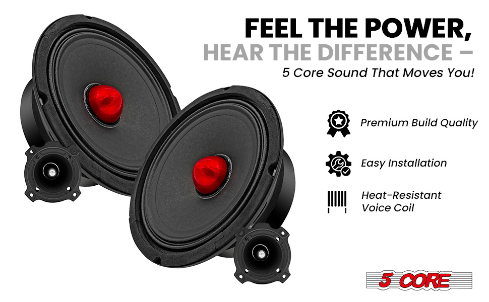 High-Performance Mid Range speaker 140W RMS & bullet tweeter 200W RMS combo for high fidelity audio.5 Inch CCAW voice coil in speaker & aluminum diaphragm in tweeter enhance stability & performance.