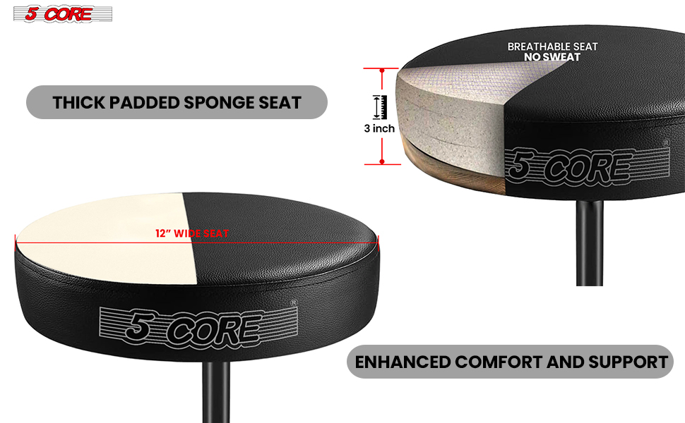 5 Core Drum Throne 3" Thick Padded Memory Foam Comfortable Drummer Stool 330Lb Capacity Adjustable