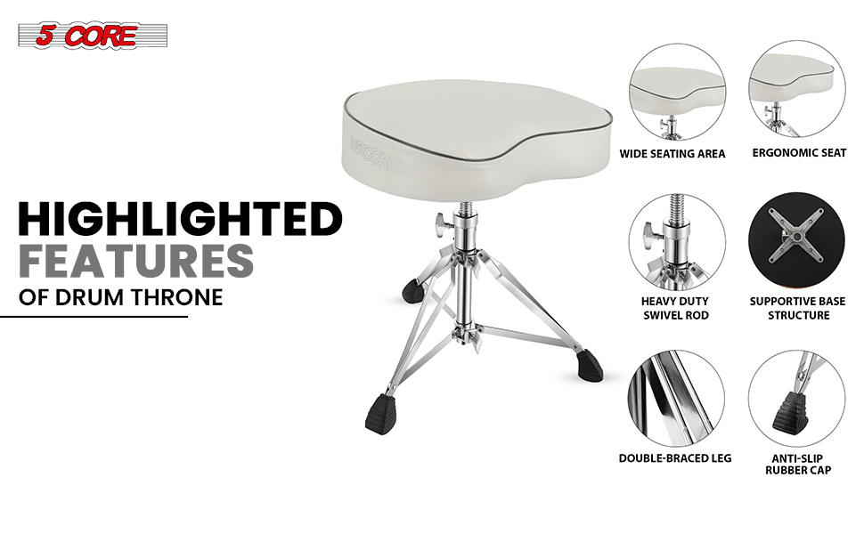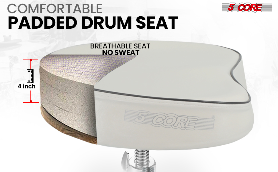 Specification Brand:5 CoreAvailable Ship to:Puerto Rico,United StatesDetailsProduct DescriptionExperience amazing comfort with our thick padded drum throne, featuring a 4 inch high-density soft s...