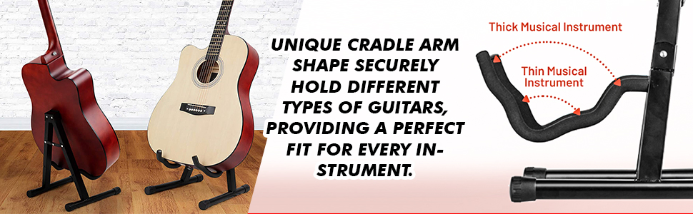 The unique shape of the arms holds large or small guitars safely. It increases the instrument compatibility significantly.