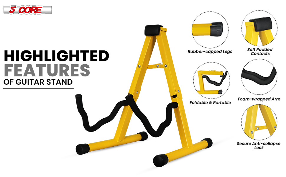 Brand:5 CoreAvailable Ship to:Puerto Rico,United StatesDetailsProduct DescriptionThis heavy-duty A frame metal guitar stand floor offers unmatched stability and...