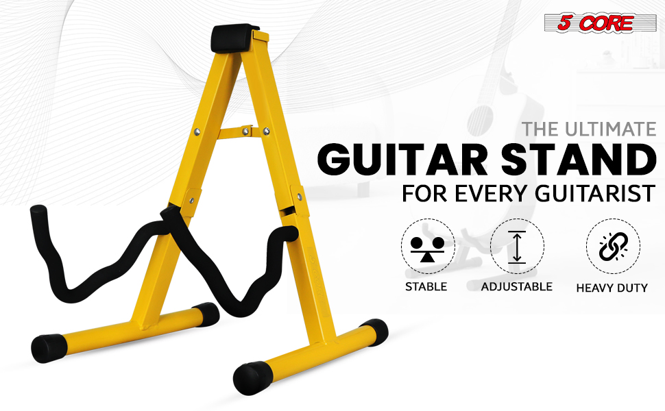 This heavy-duty A frame metal guitar stand floor offers unmatched stability and durability with its thick steel construction and reinforced welded joints. Adjustable to fit acoustic, electric, ukulele, and bass guitars, this guitar support features soft padding to protect against scratches and dents.