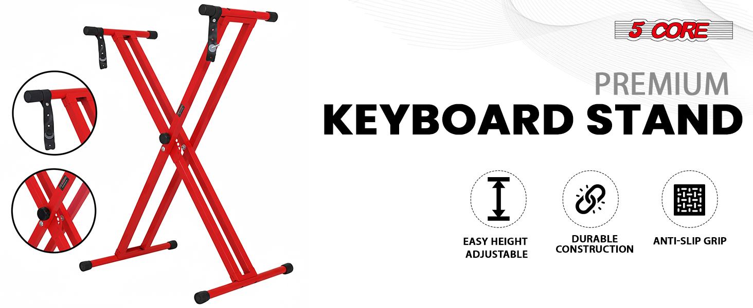 5 Core Keyboard Stand Dual X Shape Adjustable Foldable Portable Key Board Stands W Locking Strap