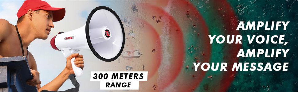 LOUD MEGAPHONE - Impressive 50W power amplifies voice up to 300 meters. Never strain your voice again SIREN MODE - Draw audience's attention fast by blasting loud emergency audio with a push of a button 60 SECOND RECORDING - Capture and playback important messages on the go with our megaphone's built-in recording feature VOLUME ADJUSTABLE - Control the bullhorn audio using the sliding button in the back of megaphone to your liking. MULTI INPUT - Connect an external audio source with a USB/SD Card & expand your communication option.