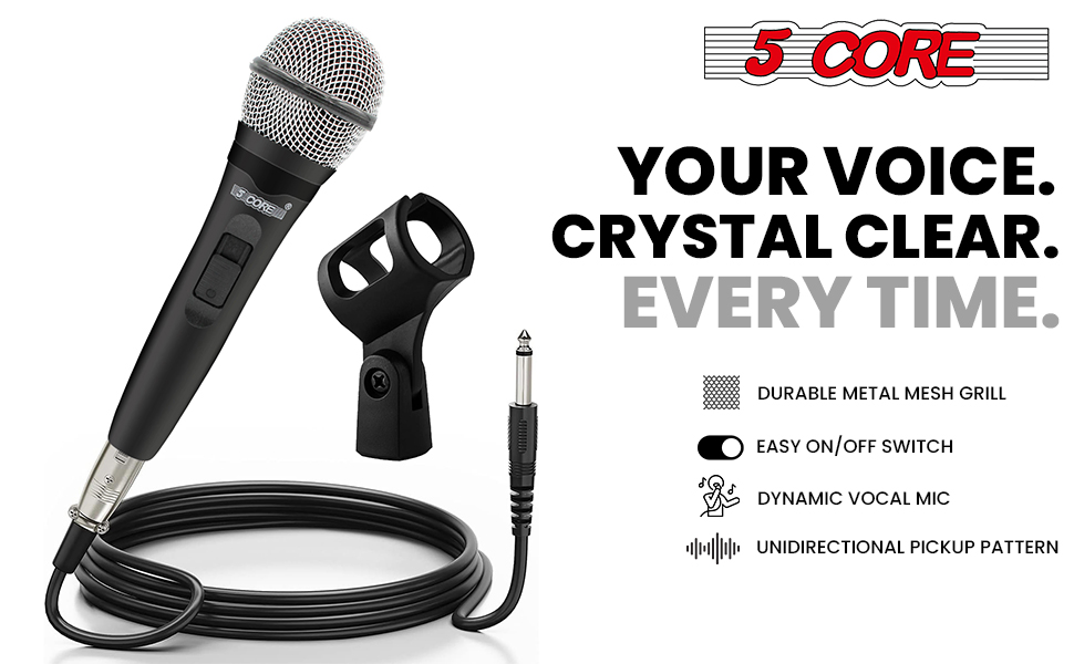 Product DescriptionExperience superior audio quality with the 5 Core cardioid karaoke microphone, designed to deliver brilliant sound reproduction while reducing noise and feedback. The wide frequency response in the dynamic microfono ensures consistent sound pickup from the source and keeps its natural form. You don't need to do a lot of equalization to get the perfect sound. This is a professional vocal microphone for singing, designed to offer you clarity and amazing sound.