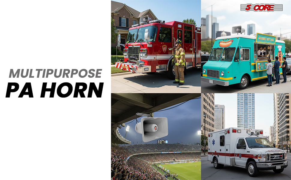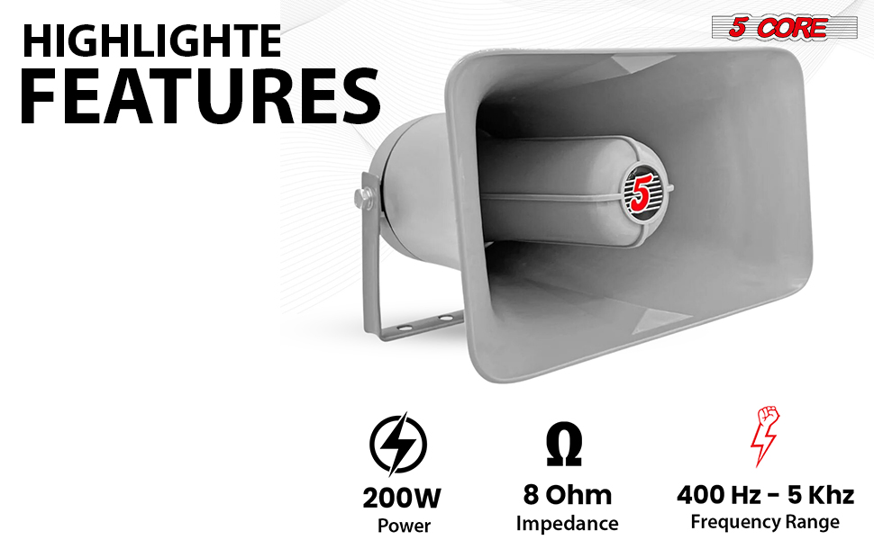 Brand:5 CoreAvailable Ship to:Puerto Rico,United StatesDetailsProduct DescriptionThis PA horn speaker is built for clear, dependable sound projection in demanding outdoor and mobile...