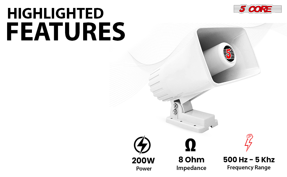 Brand:5 CoreAvailable Ship to:Puerto Rico,United StatesDetailsProduct DescriptionThis PA horn speaker is built for clear, dependable sound projection in demanding outdoor and mobile...