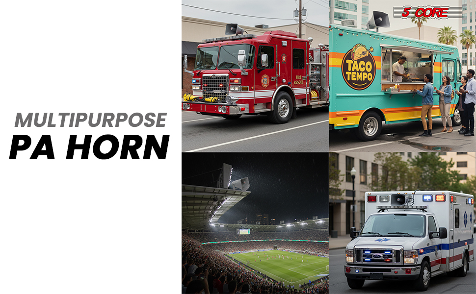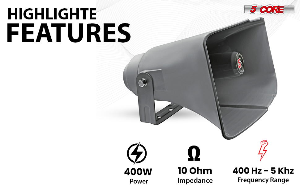 Brand:5 CoreAvailable Ship to:Puerto Rico,United StatesDetailsProduct DescriptionThis PA horn speaker is built for clear, dependable sound projection in demanding outdoor and mobile...