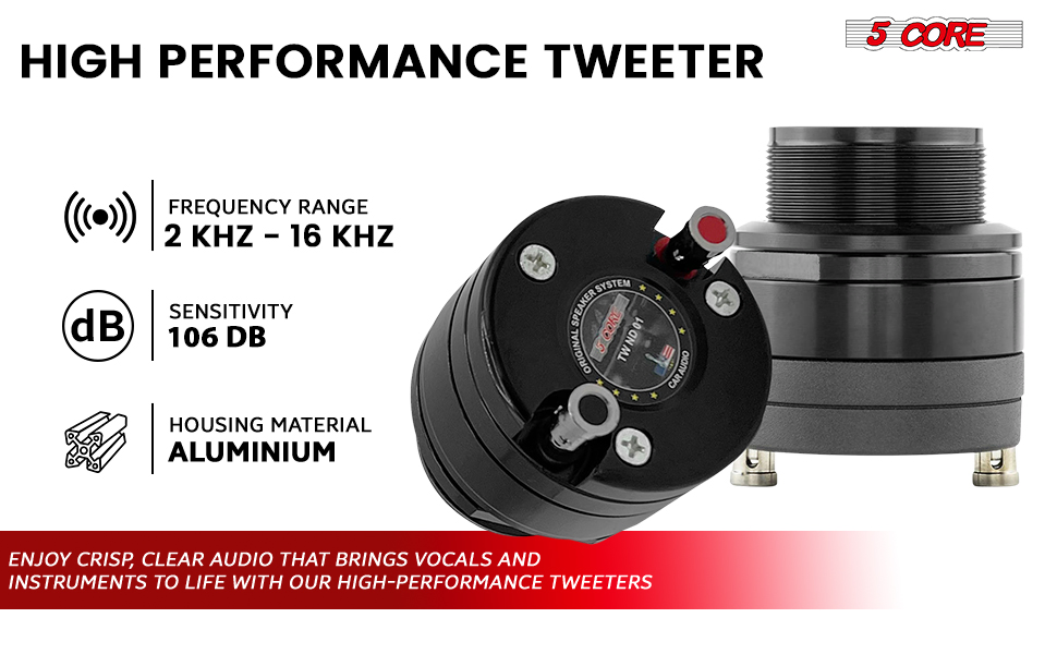 The 5 Core super bullet tweeter produces crystal clear high-frequency sounds, delivering an immersive audio experience.