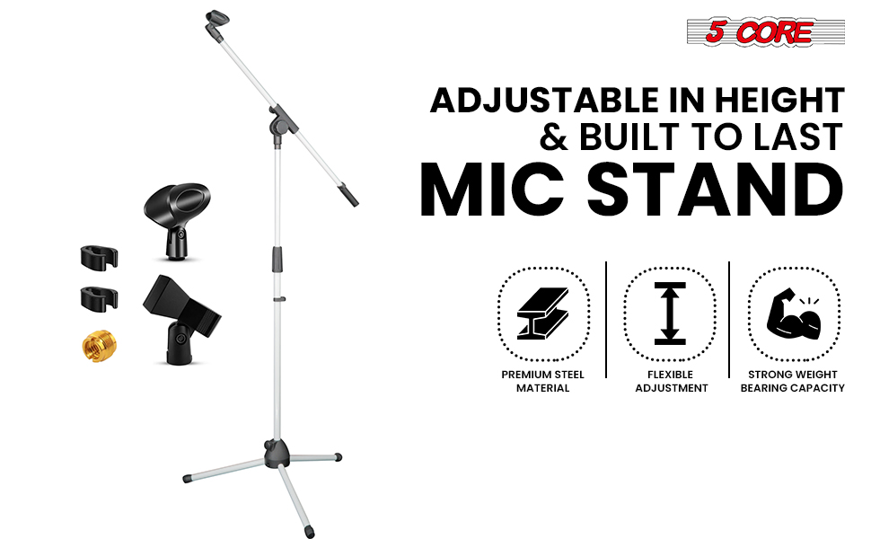 5 Core Tripod Mic Stand Floor Adjustable 18 To 72 Inches Sturdy Boom Arm Holder Microphone Stands Pedestal Para Microfono For Singing MS 080 WH