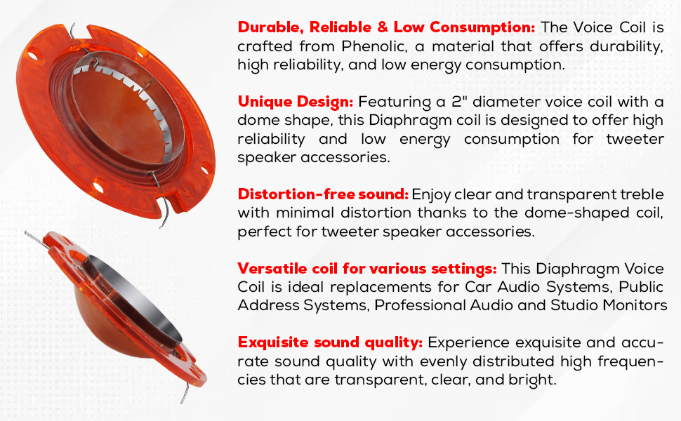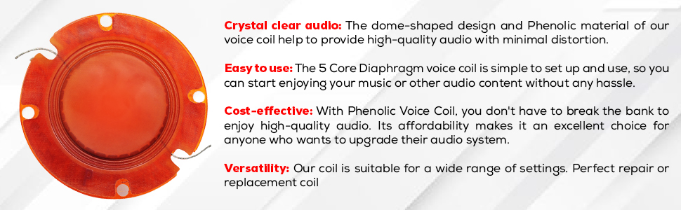 Looking for high-quality audio that does not require a hefty investment? The 5 Core dome-shaped Phenolic Voice Coil is just what you need! With a 2-inch diameter voice coil and a design tailored to tweeter speakers, this diaphragm coil offers crystal-clear sound with minimal distortion.
