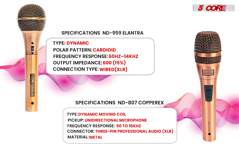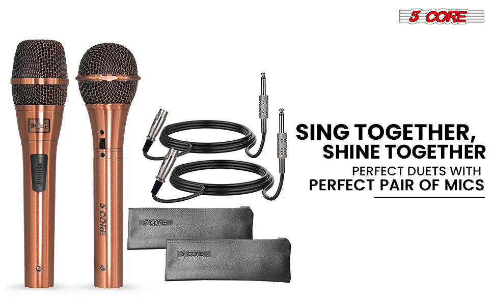 5Core Couple Karaoke Microphone Pair Handheld Dynamic XLR Mic For Him & Her Clear Sound Stylish Look
