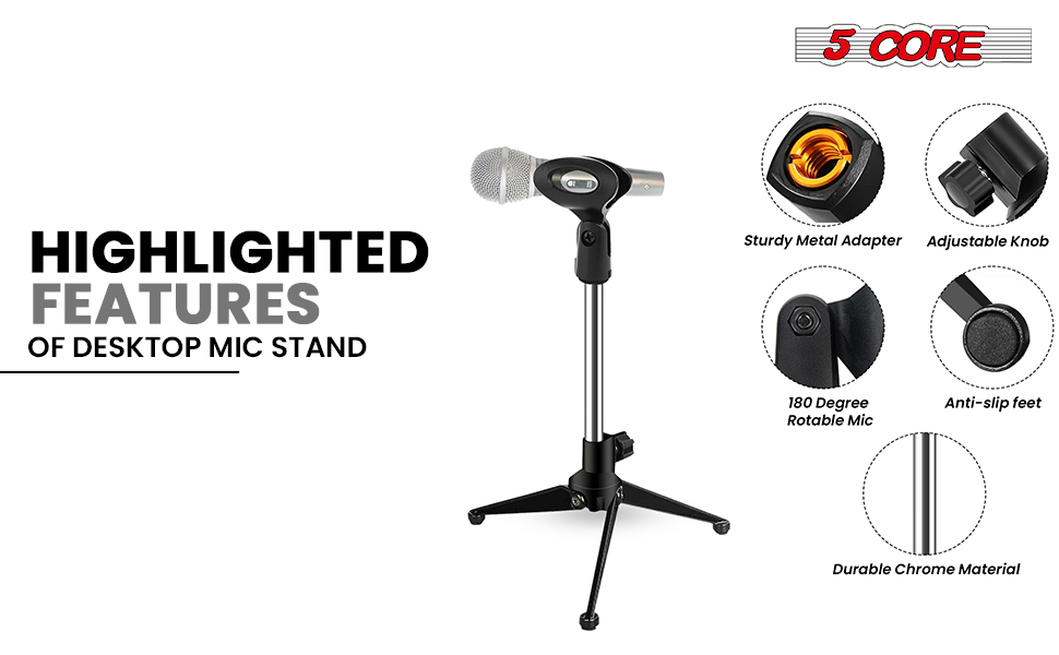 Specification Brand:5 CoreAvailable Ship to:Puerto Rico,United StatesDetails Product Description Enhance your recording setup with this sleek desktop microphone stand, featuring a styli...