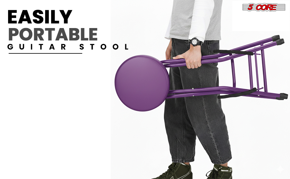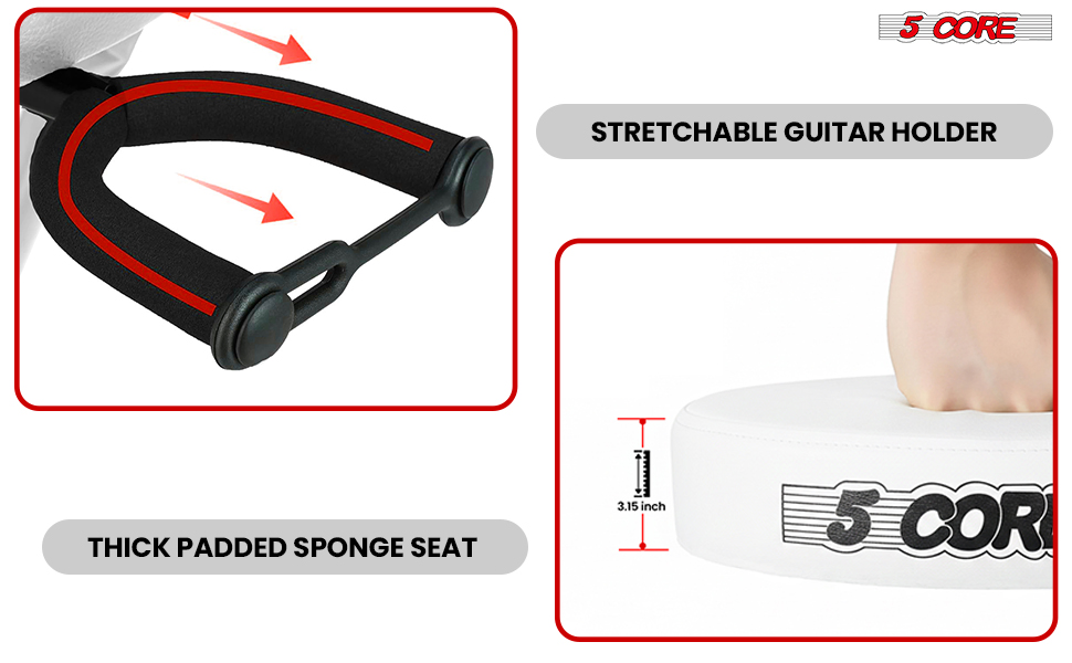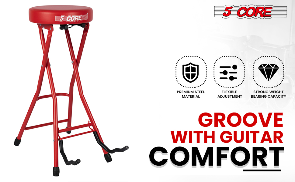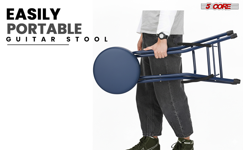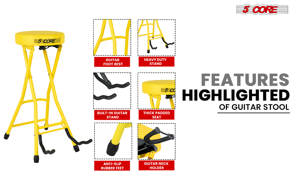 5Core Guitar Stool 3.15" Padded Chair Foldable Heavy Duty Music Seat Built In Foot Rest Guitar Stand