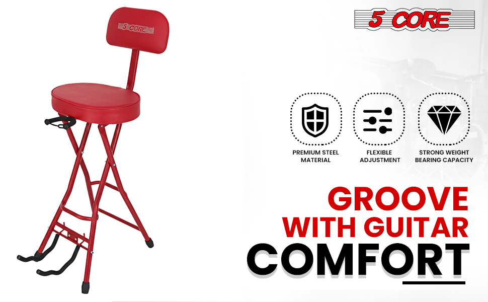 5Core Guitar Stool 3.15" Padded Chair W Backrest Foldable Music Seat Built In Foot Rest Guitar Stand