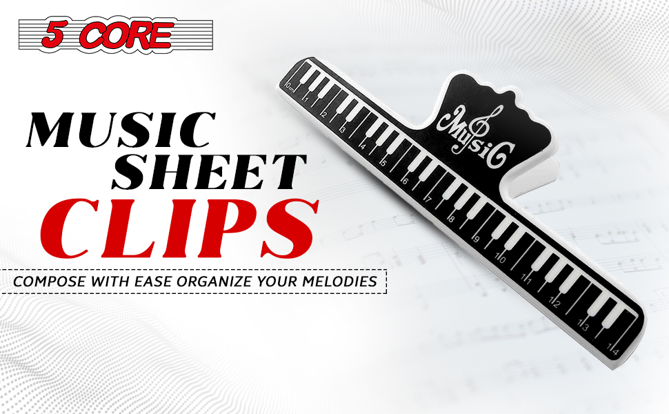 5Core Music Sheet Page Holder Clip Black Durable Plastic Music Score Fixed Clips