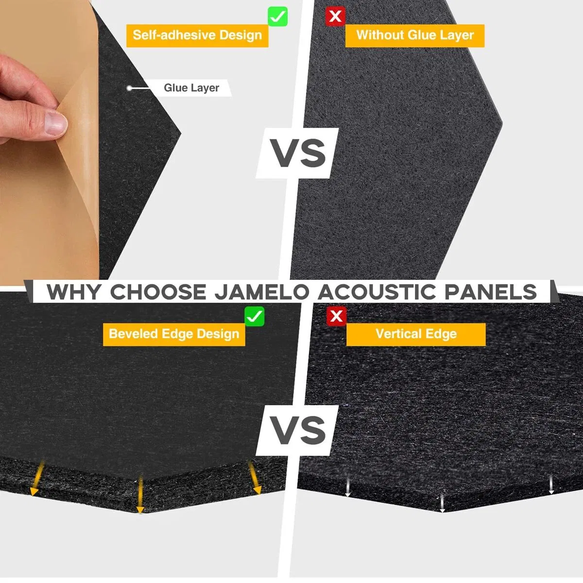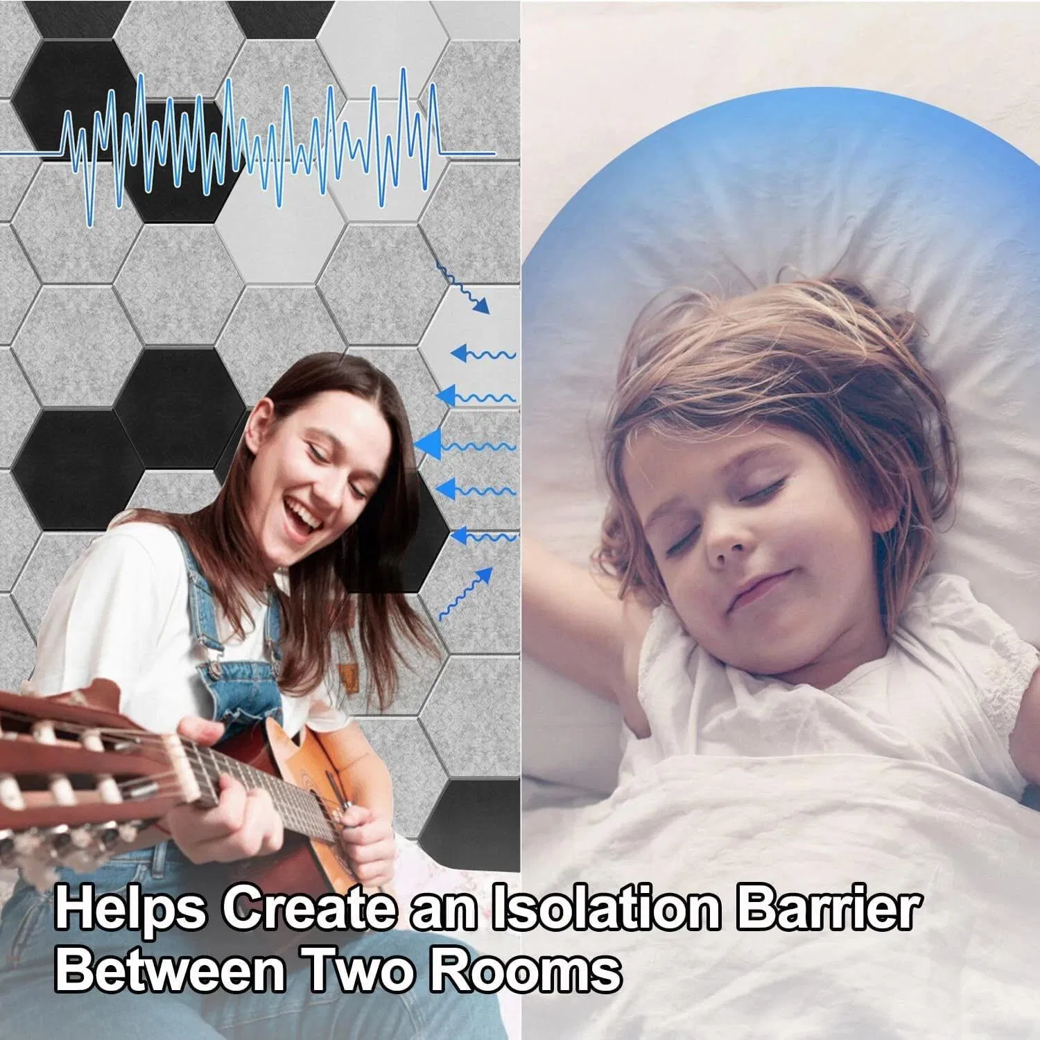 - Powerful Sound Insulation: This hexagonal acoustic panel is made of 100% high - density polyester fiber. It has sound insulation, flame retardancy, odorlessness, slip - resistance, non - toxicity, corrosion resistance, and light resistance. Weighing 300 pounds per cubic meter, it offers better sound insulation than soundproof foams.