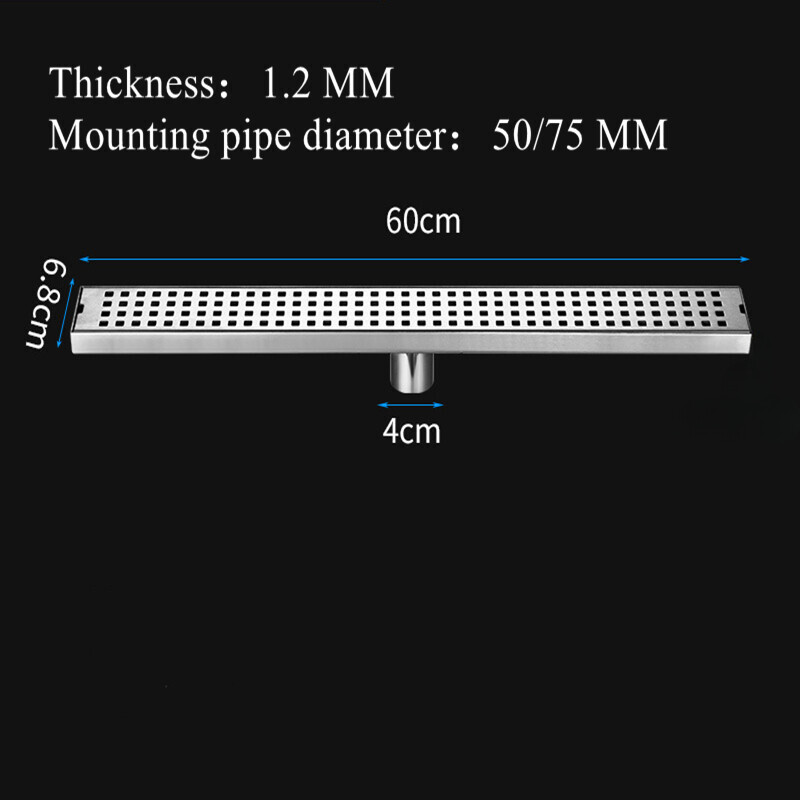 60CM Gully Waste Trap Wet Room Linear Shower Floor Drain Stainless Steel Channel