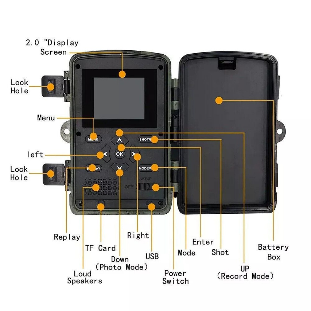 ---More Features: When the SD card is full, it will be overwritten automatically, the camera never stops shooting. hunting camera is also equipped with 2.0-inch color LCD screens, the case has passed the waterproof test of IP66, so you can use it on rainy and snowy days, it can work normally in the temperature range of -5°F to 140°F.