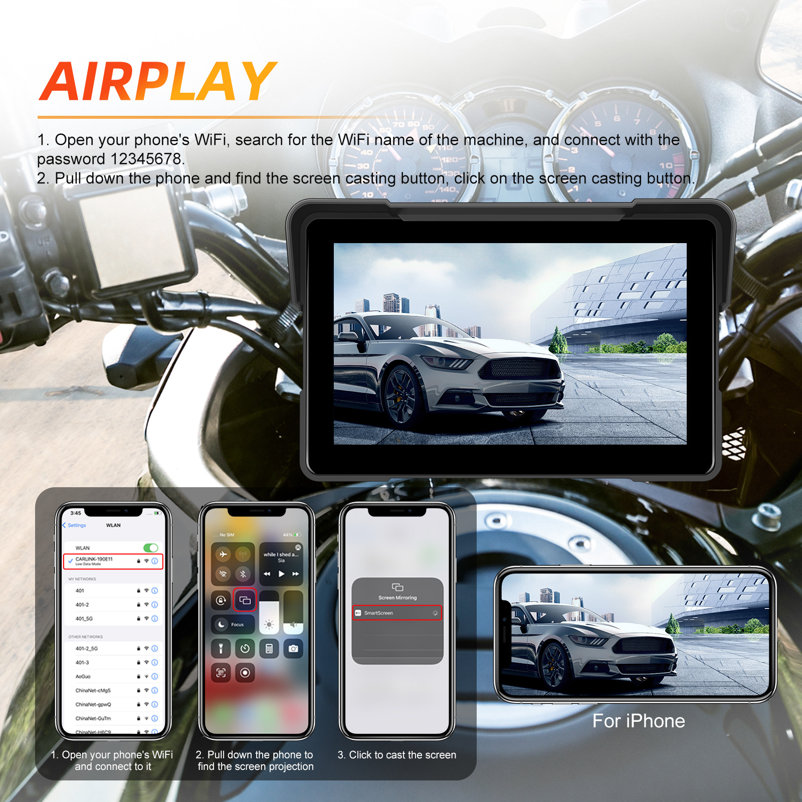 7-inch Motorcycle PND CarPlay Compatible No Recording Function