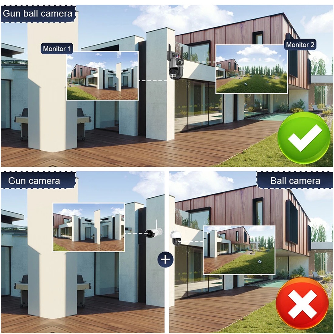 -- Model: dual-camera gun + dome linkage