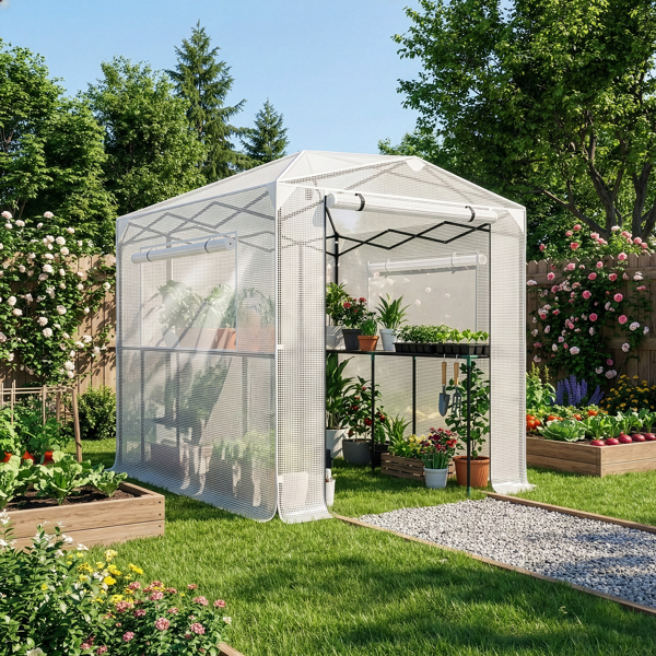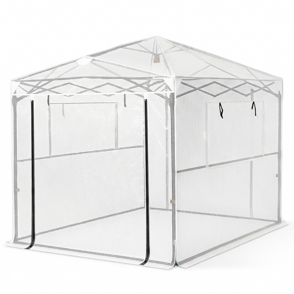 8x6ft Plastic Sprayed Iron Pipe PE Mesh Foldable Greenhouse Shed White
