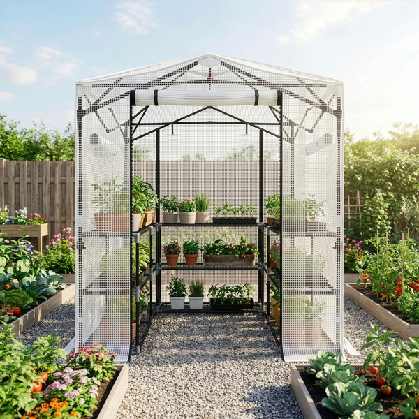 Creating a professional growth tent for plants to live better is quite a necessity. We're willing to provide you this 8*6ft Plastic Sprayed Iron Pipe PE Mesh Foldable Greenhouse Shed. Thanks to its premium materials as well as exquisite workmanship, this tent is of great strength and solid structure. It can resist strong wind and heavy rain, effectively protecting plants from any damage. What's more, it provides sufficient living condition to promote plants' growth. Spacious enough for accommodating numbers of plants!
