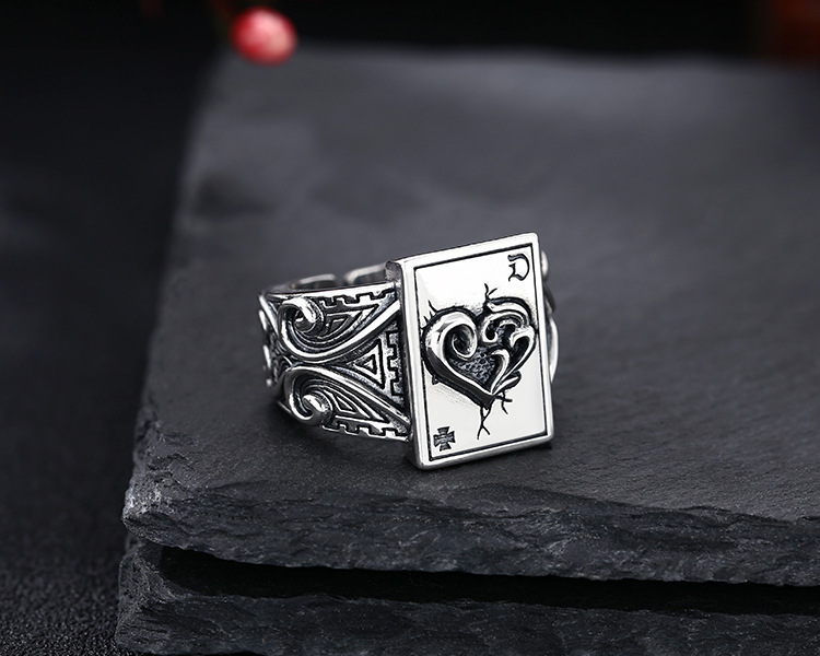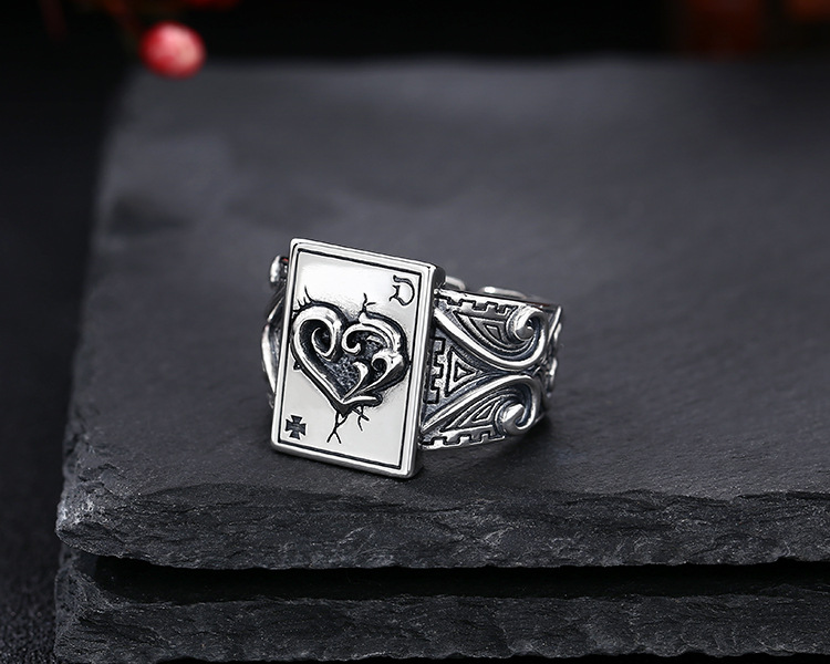 925 Sterling Silver Poker Card Ring Open-End Adjustable