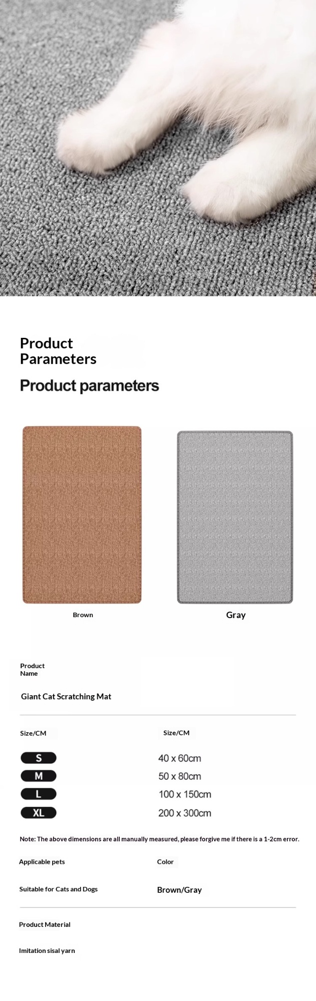 Product information:Color: Brown, gray Material: Sisal Dimensions: 40*60 cm, 50*80 cm, 100*150 cm, 200*300 cm Style: Minimalist Size: Packing list: Cat Scratch Board x1pc Product Image: