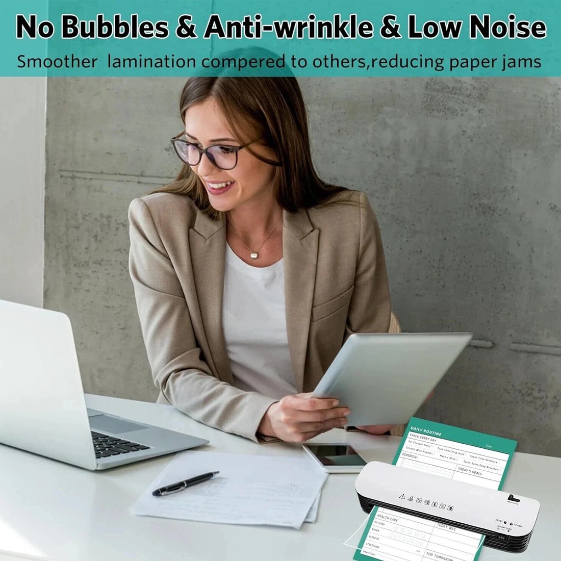 【Portable & Sleek Design 】9 inches personal laminator features 230mm entry(A4 size), Suitable for home office scenes such as desks and dressing tables