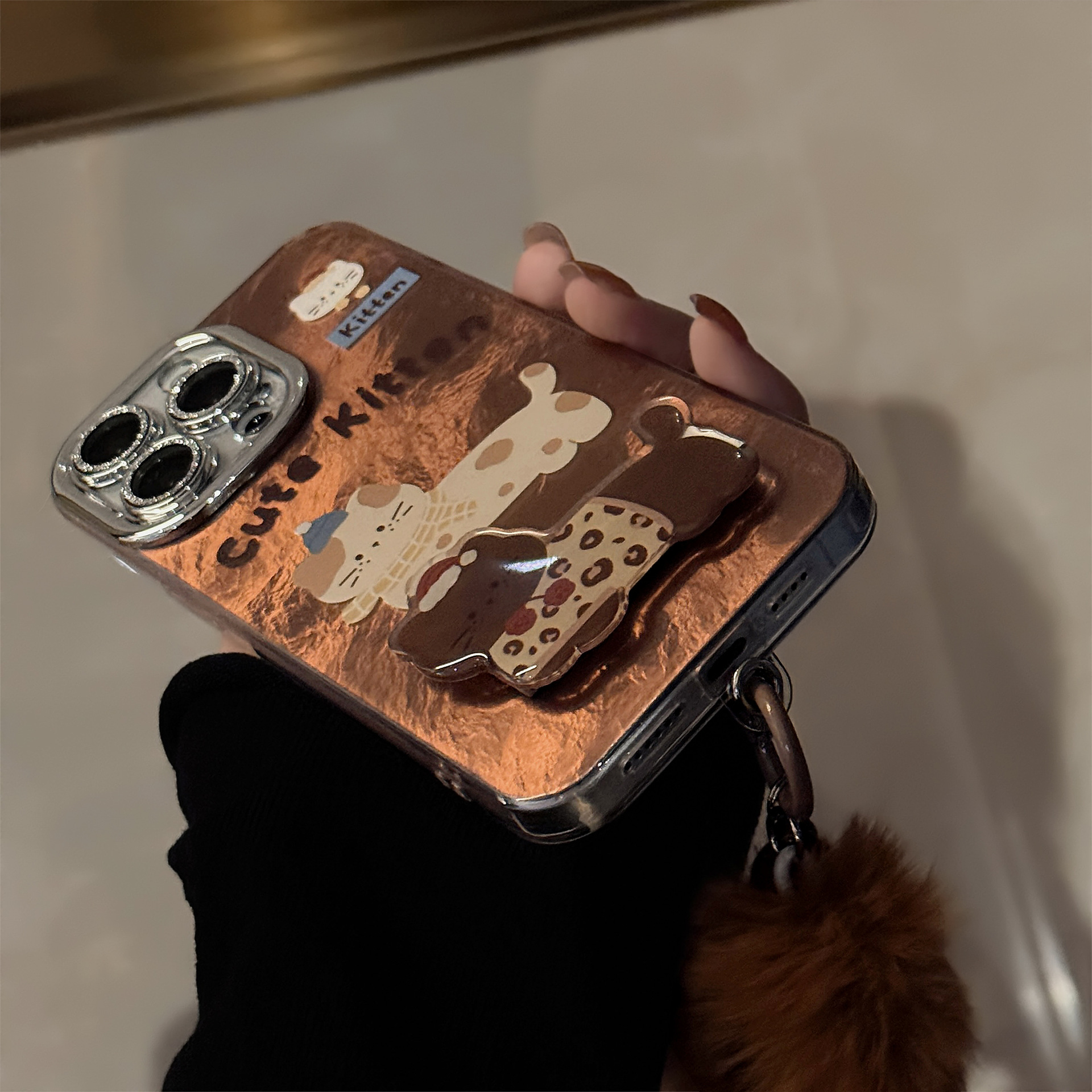 Product information:Color: Silver, brown-tinted spotted cat + leopard-print cat stand + plush brown ball on a rope; silver, brown-tinted spotted cat + leopard-print cat stand Compatible Models: Apple...