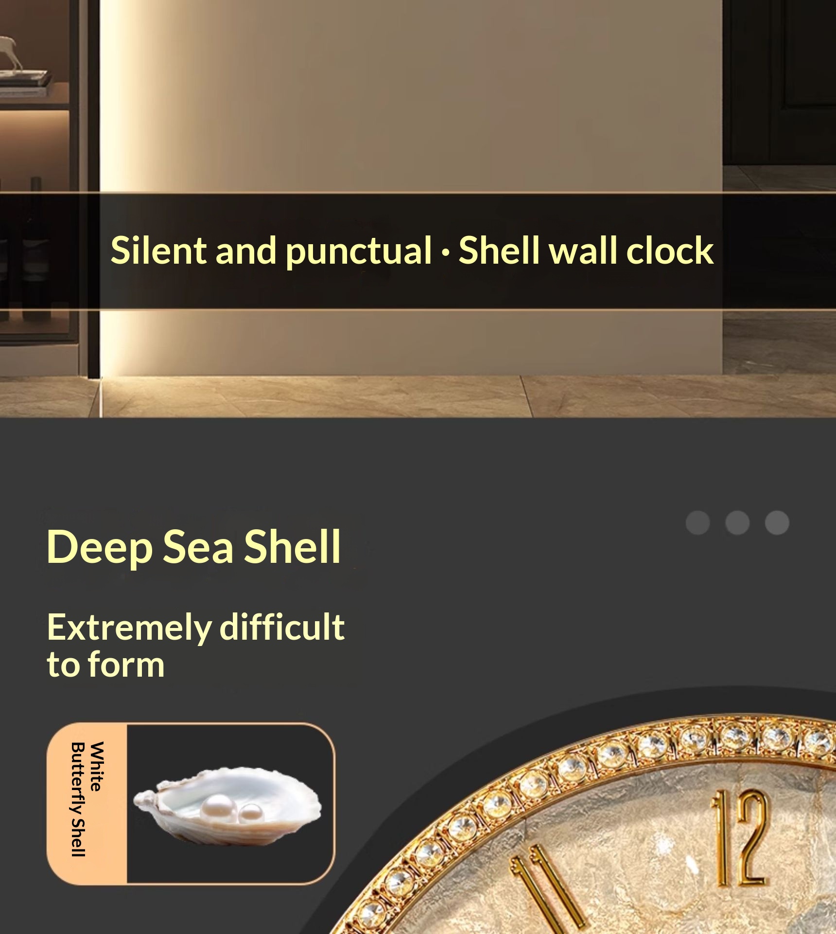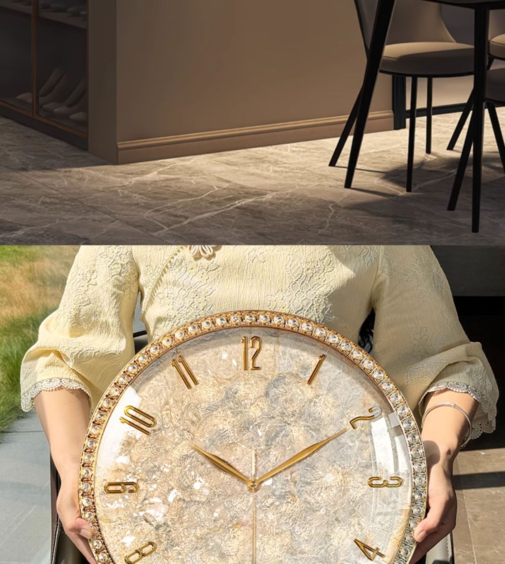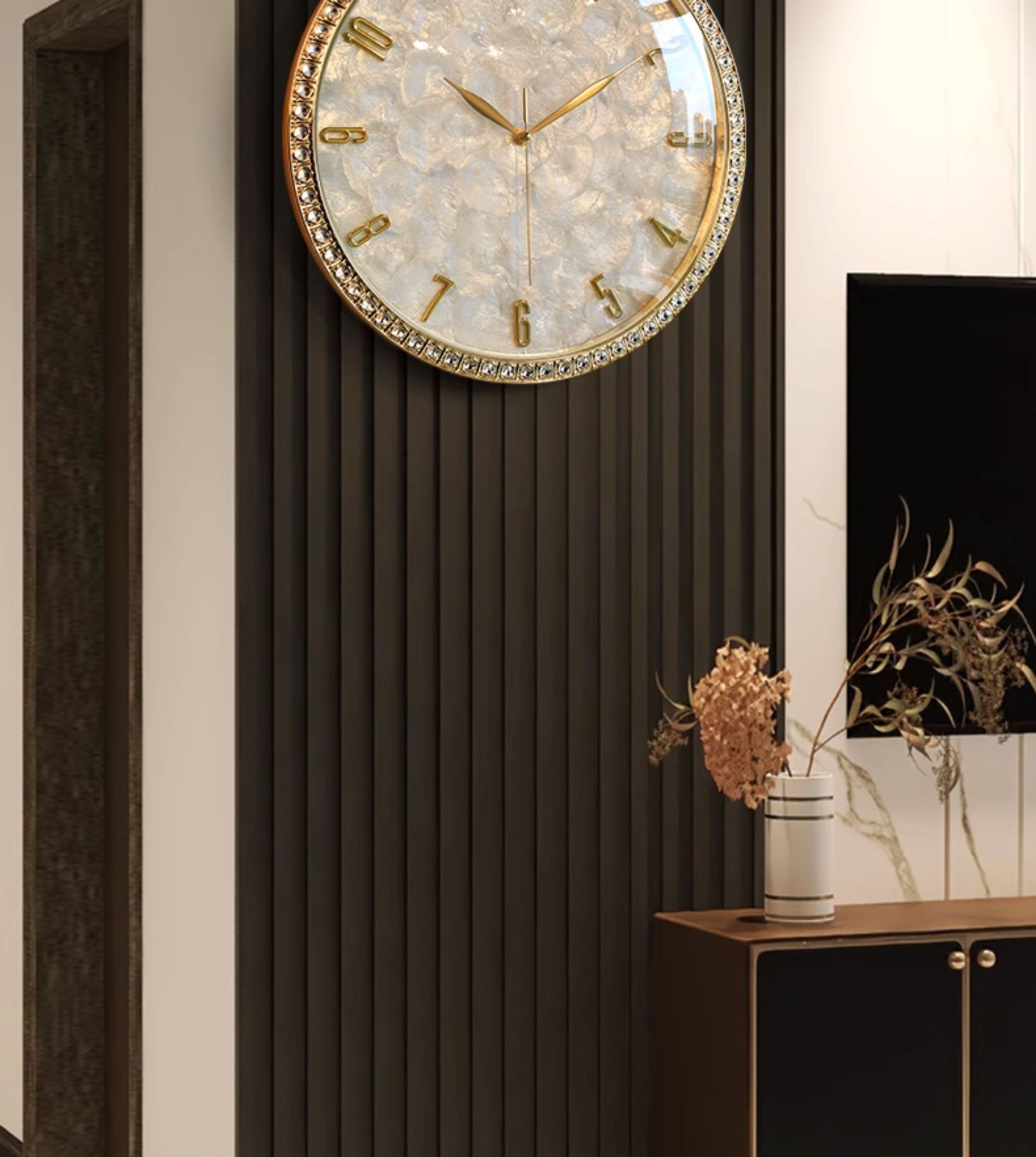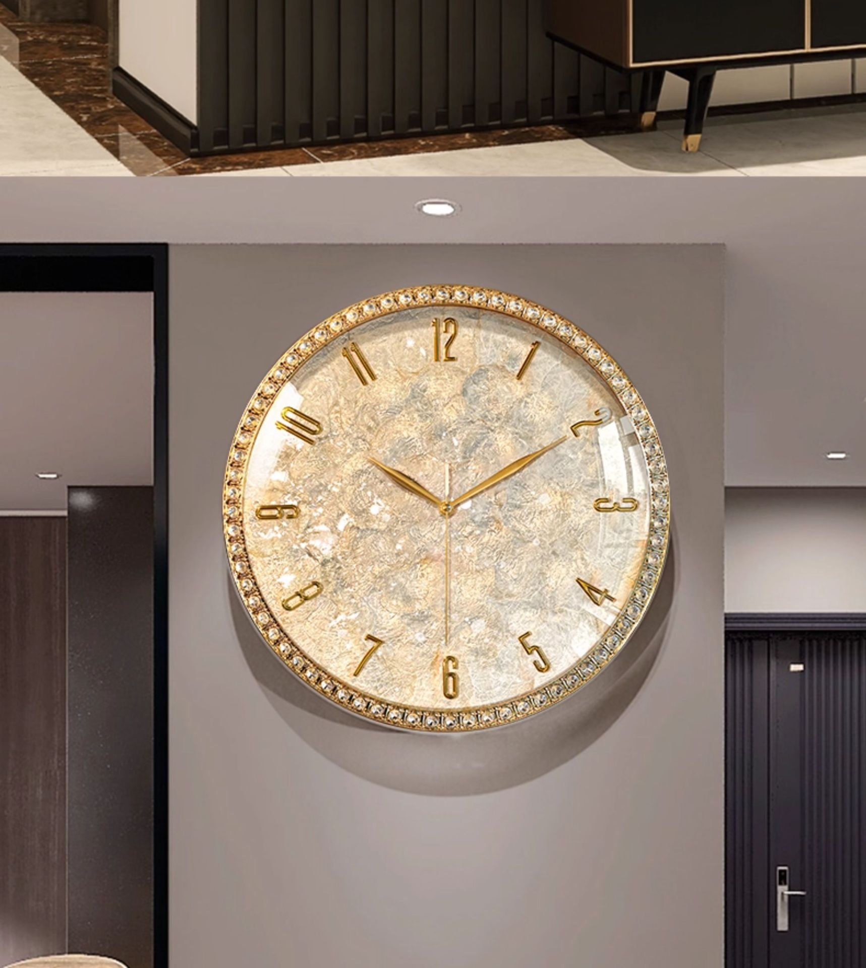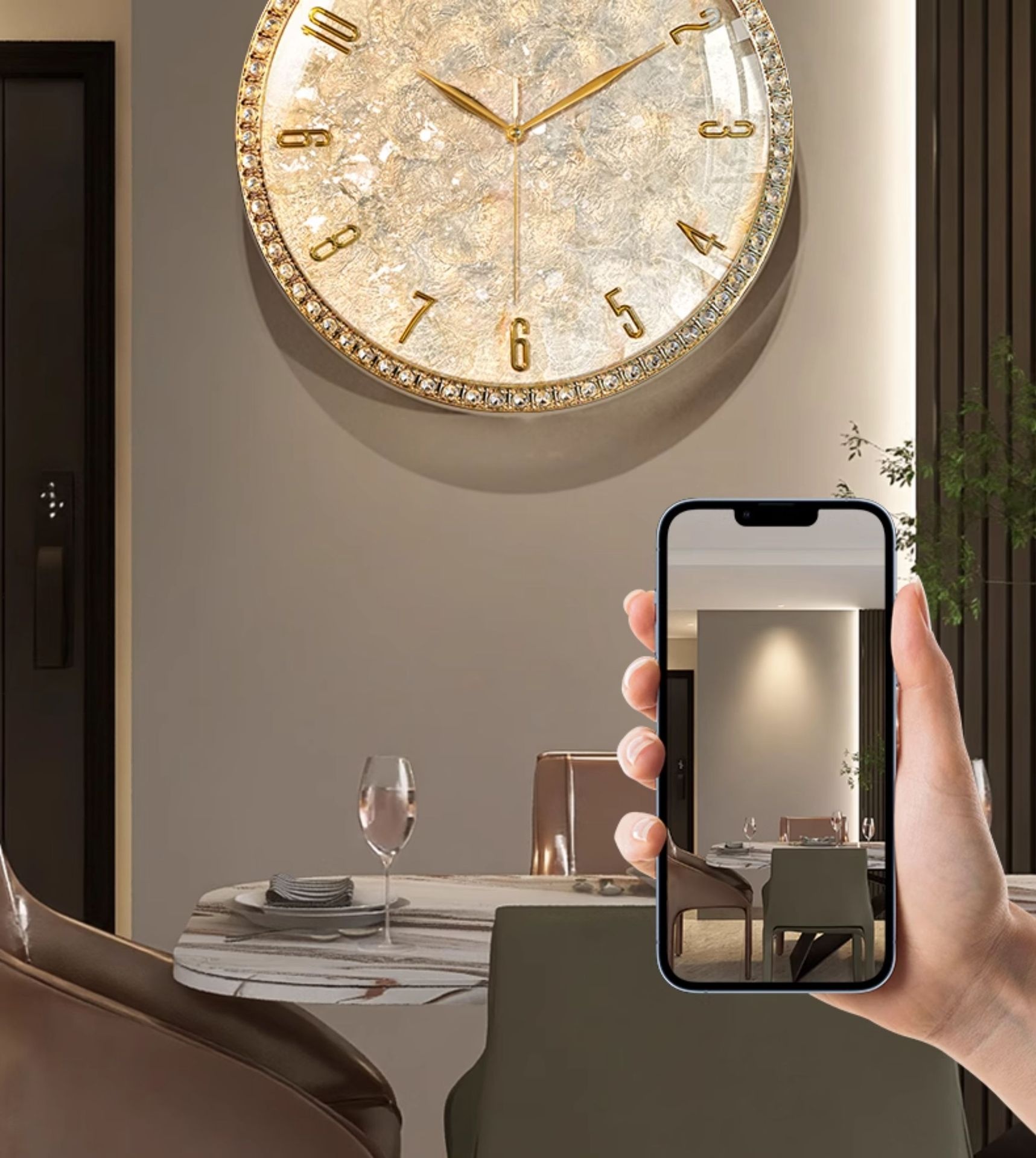 Dimensions: Rhinestone version — 18 inches; Rhinestone version — 18 inches — perpetual calendar — automatic time synchronization; White diamond version A — 16 inches; Pink diamond version A — 16 inches; White diamond version B — 16 inches; Pink diamond version B — 16 inches; Black walnut wood version — 16 inches; Alloy version — 16 inches; Colorful mother-of-pearl version — 16 inches;