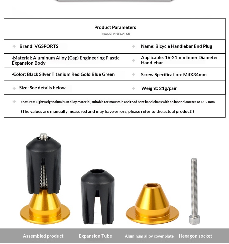 Aluminum Alloy Handlebar Plugs Bicycle Handlebar End Caps Mountain Bike Handlebar Expansion Plugs