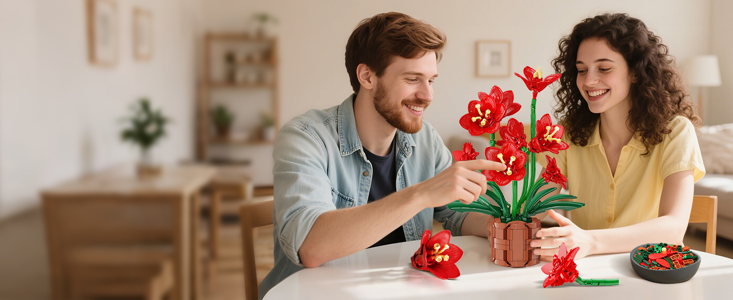AMARYLLIS FLOWER BUILDING SET - Bring everlasting beauty into your home with this lifelike amaryllis flower bouquet set, featuring 8 vibrant blooms and lush green leaves in a stylish pot. More than just a flower building kit, it’s a timeless floral art that never fades. Whether you're a builder, decorator, or nature lover, this artificial flower set symbolizes joy, prosperity, and good fortune, making every corner bloom with meaning