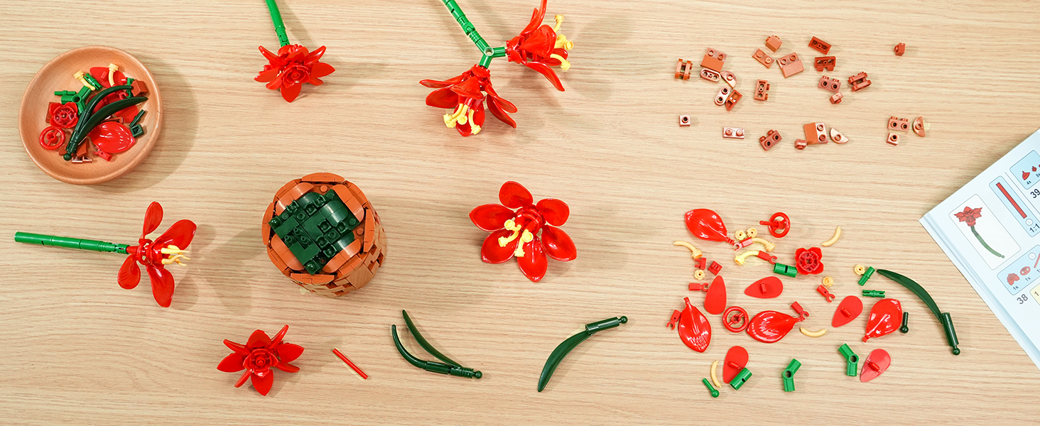 UNLEASH YOUR CREATIVITY - This eye-catching flower plant building toy lets you create floral arrangements with flexible stems and adjustable petals. Whether following instructions or going freestyle, this amaryllis bonsai flower set empowers crafters of all ages to express themselves. Bend, shape, and arrange to bring your unique floral visions to life - the perfect blend of nature and creativity