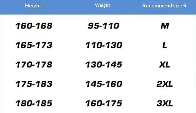 Sizes: M, L, XL, 2XL, 3XL