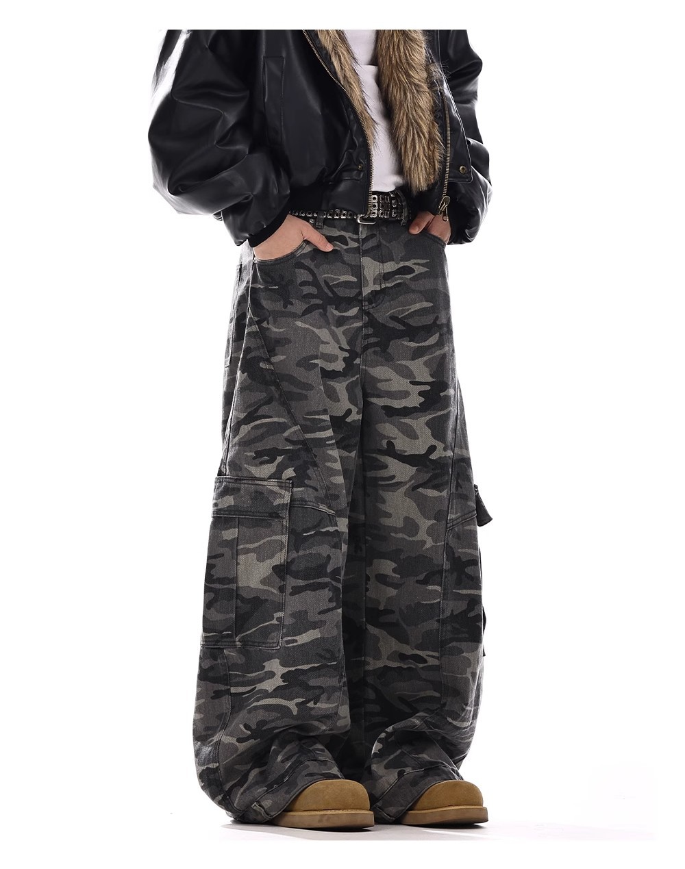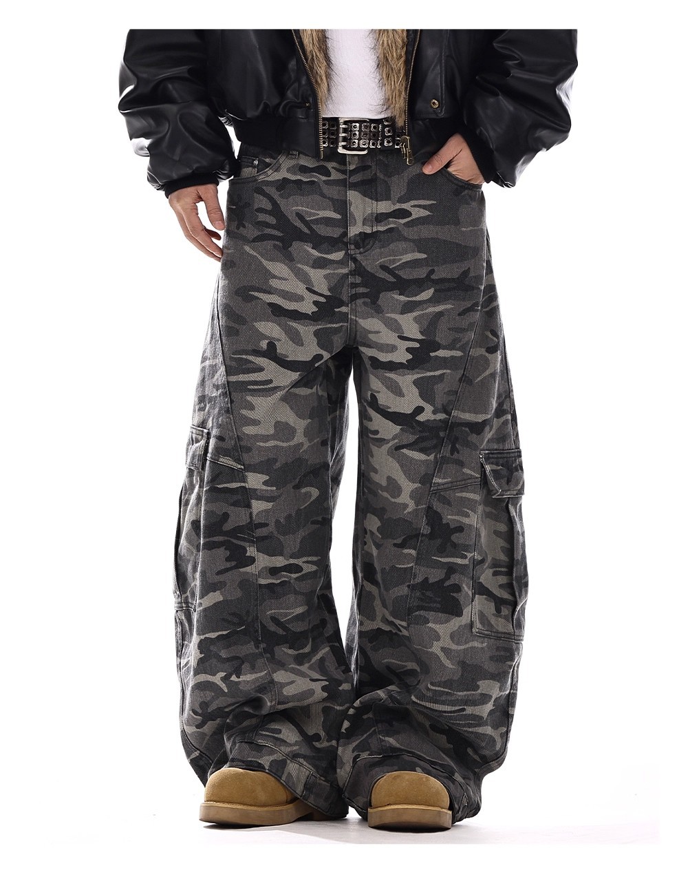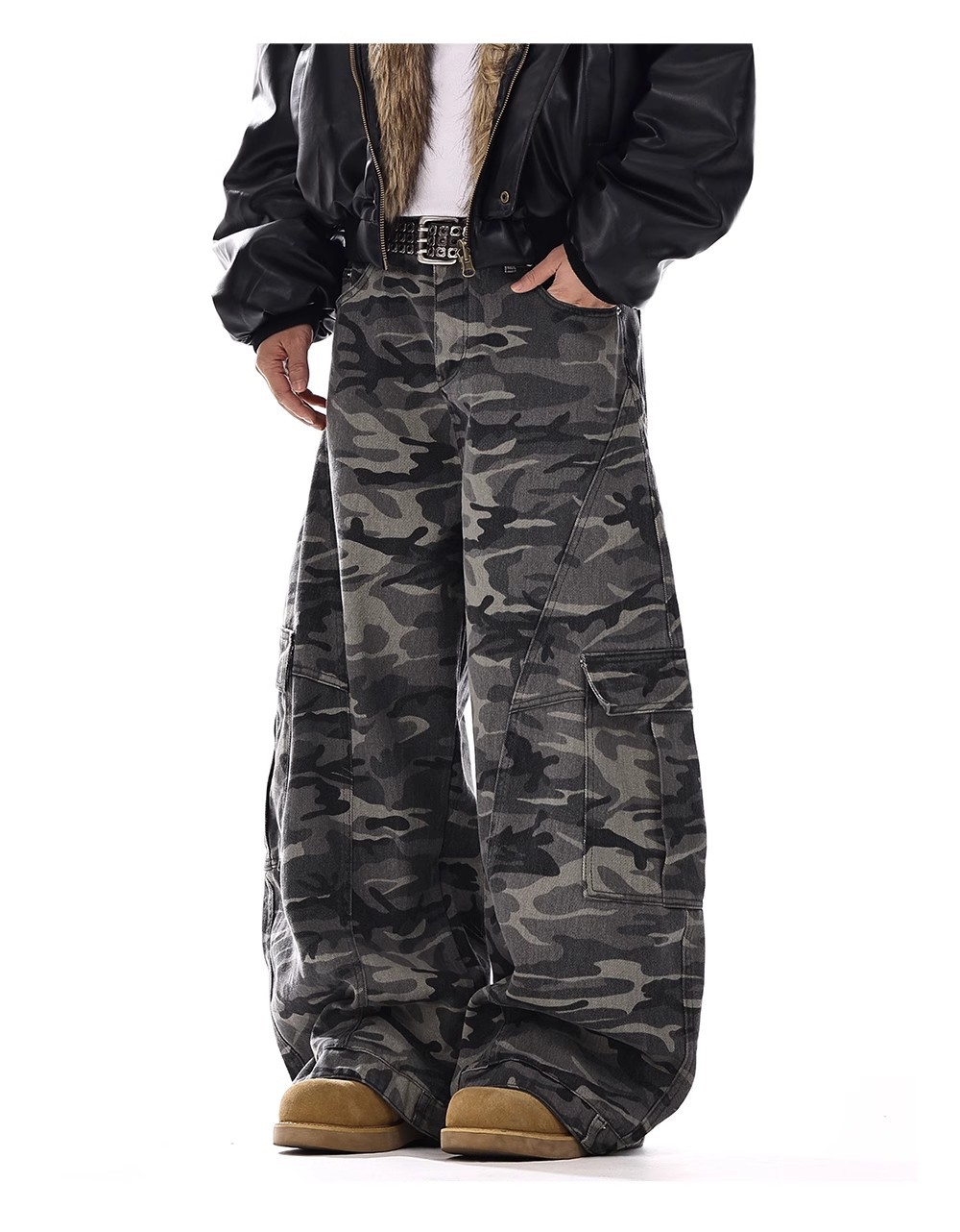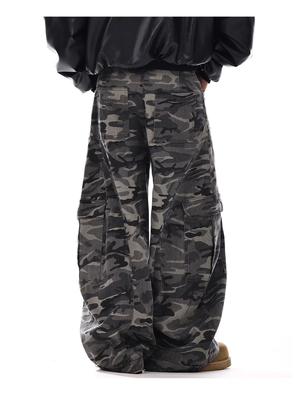 American-style Vintage Camouflage Machete-cut Jeans For Men
