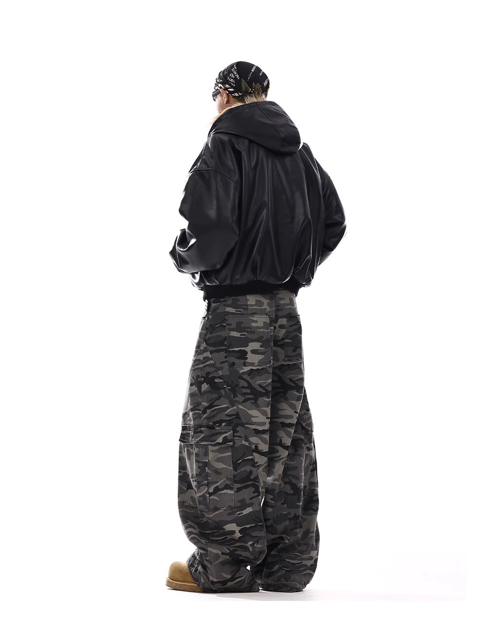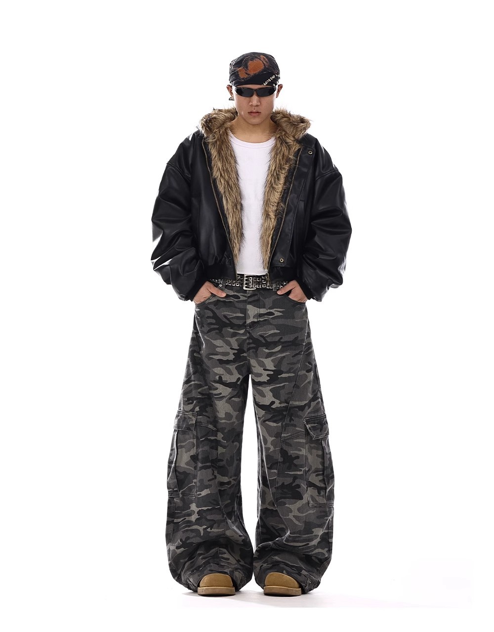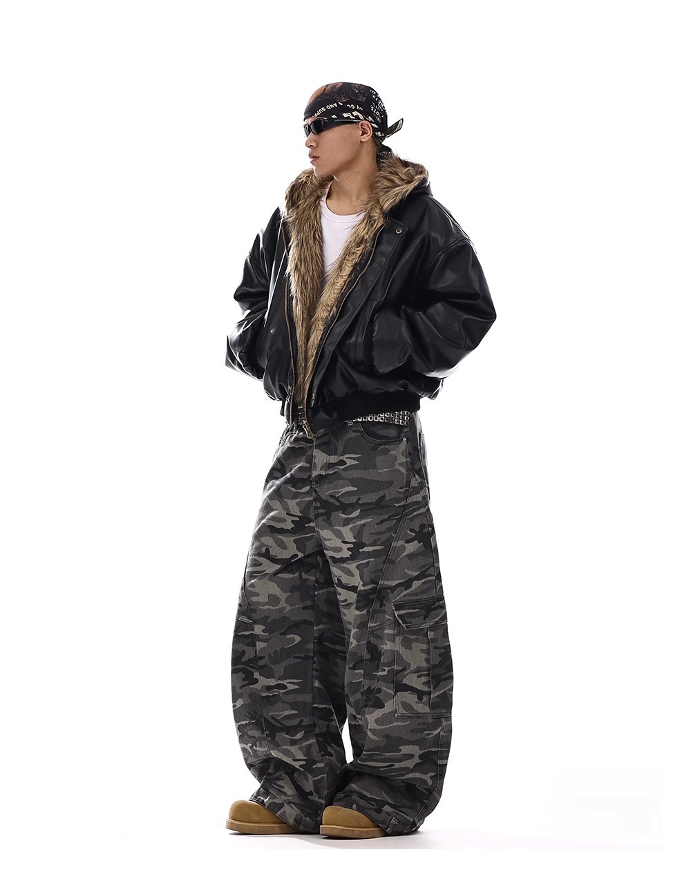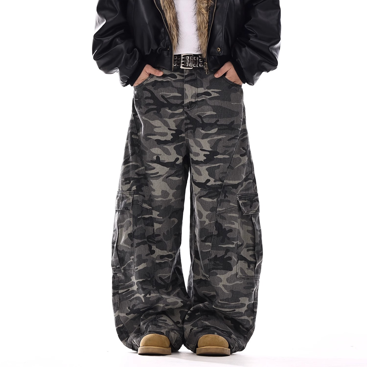 American-style Vintage Camouflage Machete-cut Jeans For Men