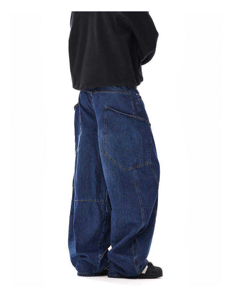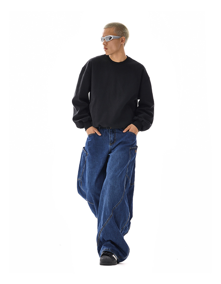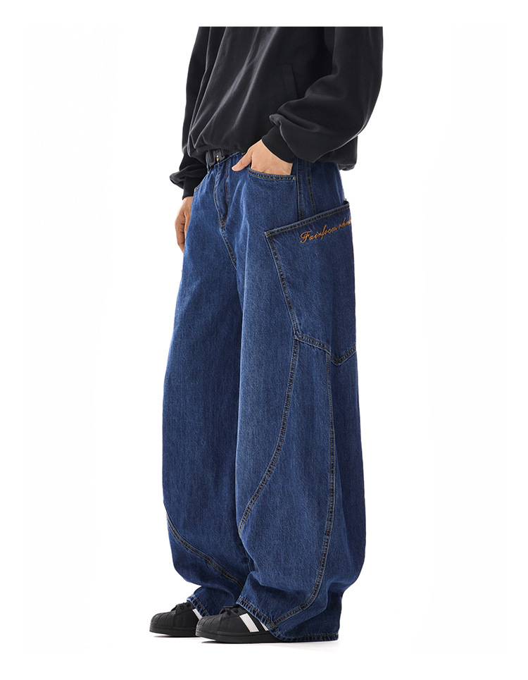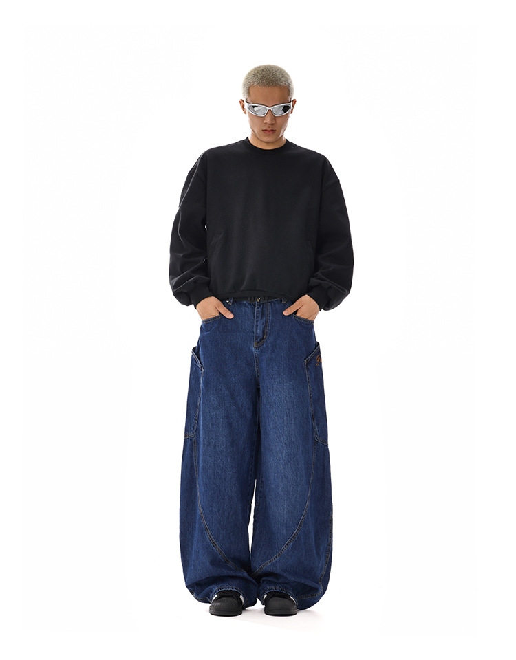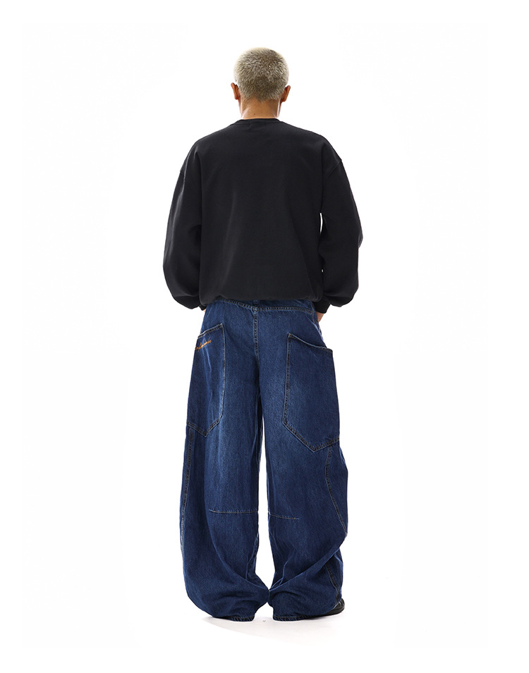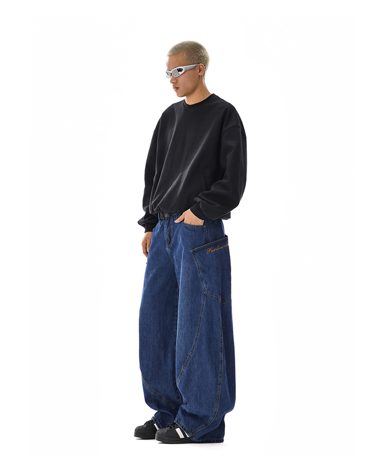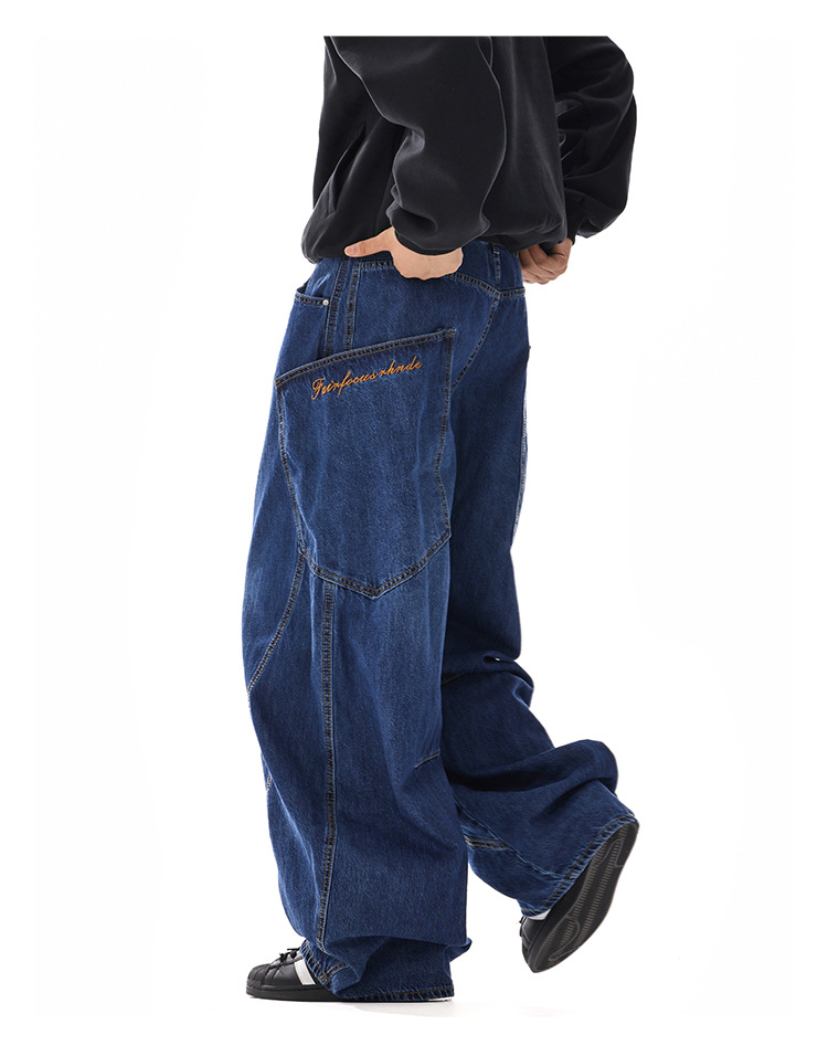 American-style Vintage Design Scimitar Workwear Jeans For Men And Women
