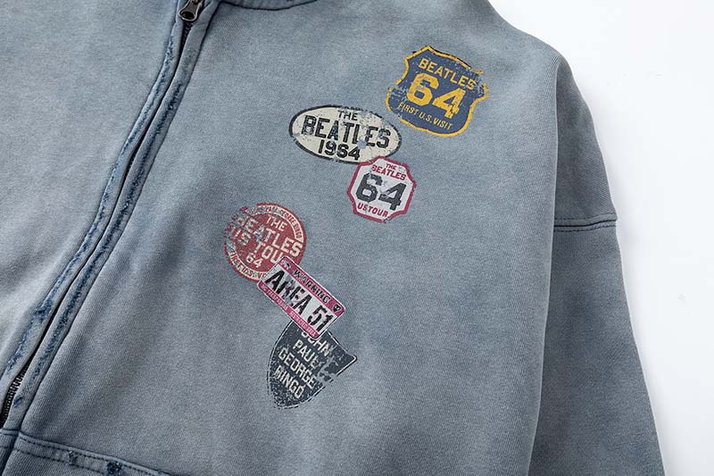 American-style Vintage DIY Badge-printed Washed-and-distressed Jacket