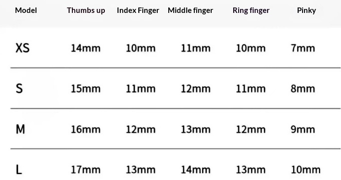 Sizes: Extra Small XS, Small S, Medium M, Large L