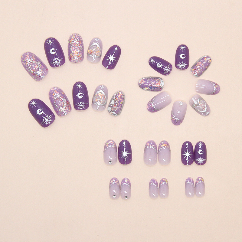 Product information:Pattern: Moon, Geometric Color: Z1241 Dreamy Stars and Moon [Adhesive] Style: Sweet, Sparkly, European and American Design: Short, Oval, Wearable Packing list: Nail patch *1 set...