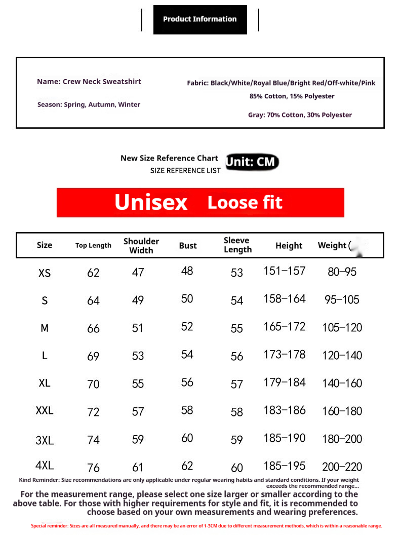 Product information:Version: Loose Style: pullover Fabric name: Cotton Hooded or not: no Hooded Sleeve length: long sleeve Style: Casual Process: non-ironing Note: 1. Asian sizes are 1 to 2 sizes smal...