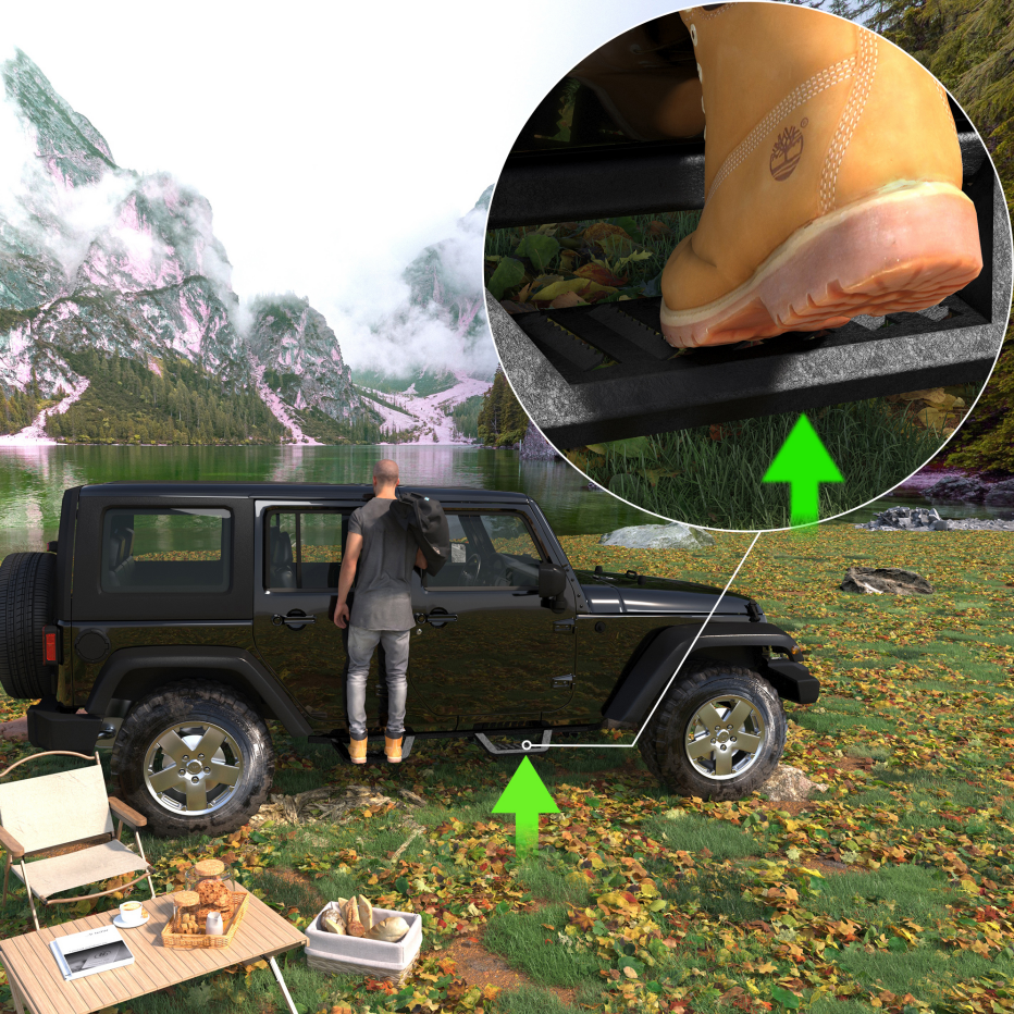 - Compatibility & Distinct Design: Our step bars are a perfect For 07-18 Jeep Wrangler JK 4 Doors Model . They seamlessly integrate with your vehicle, enhancing its appearance and functionality.