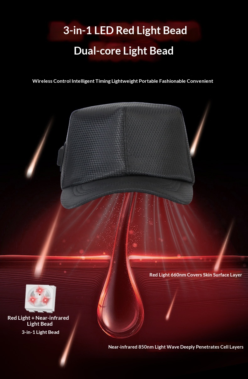 Color: Multifunctional red-light hair growth cap (100 LED beads), 100-LED red-light cap with a visor