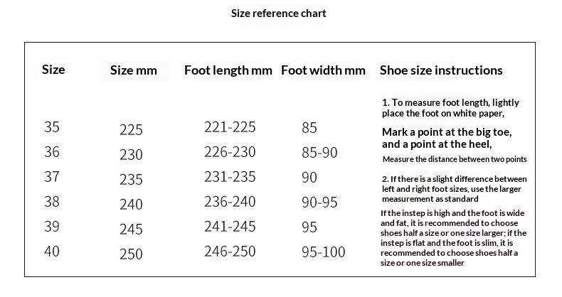 Sizes: 35, 36, 37, 38, 39, 40, 41