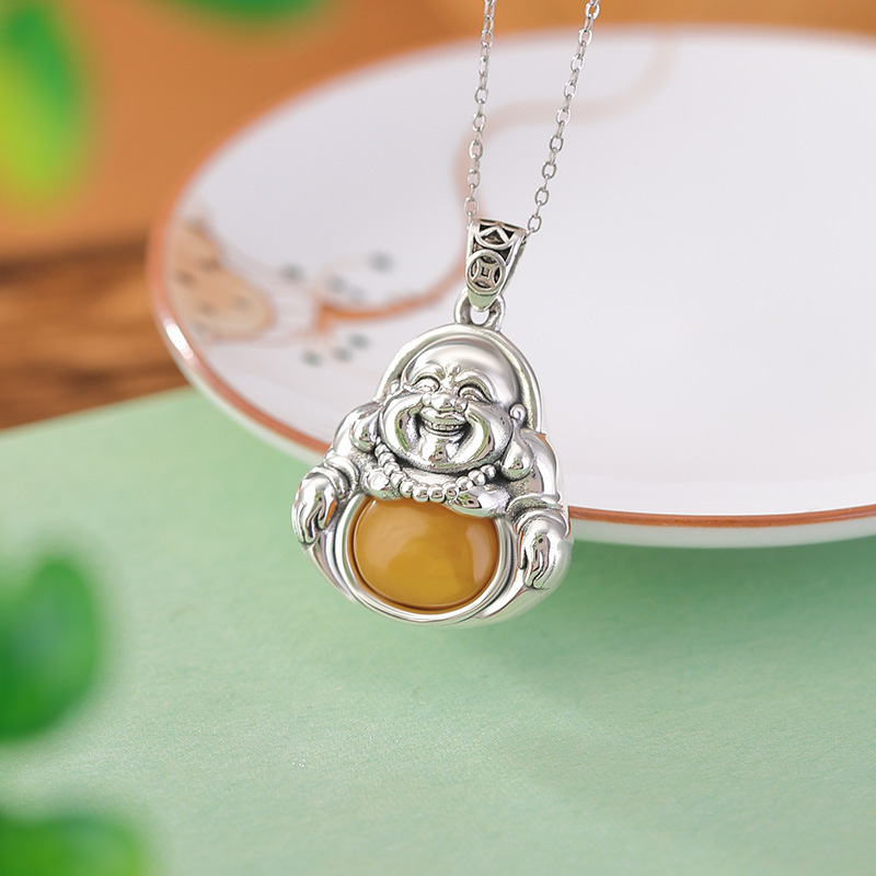 Blood Amber Ancient Coin Maitreya Buddha Pendant