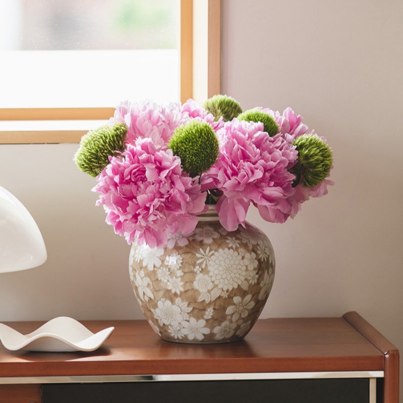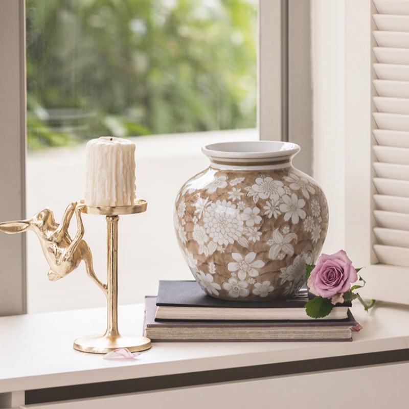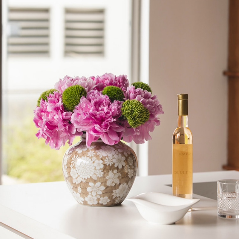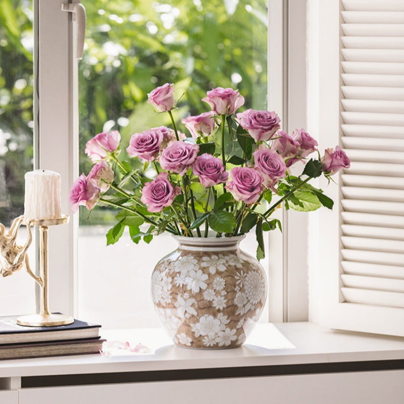 Design: Mocha Brown Ceramic Vase with a “Hundred Flowers in Bloom” Theme