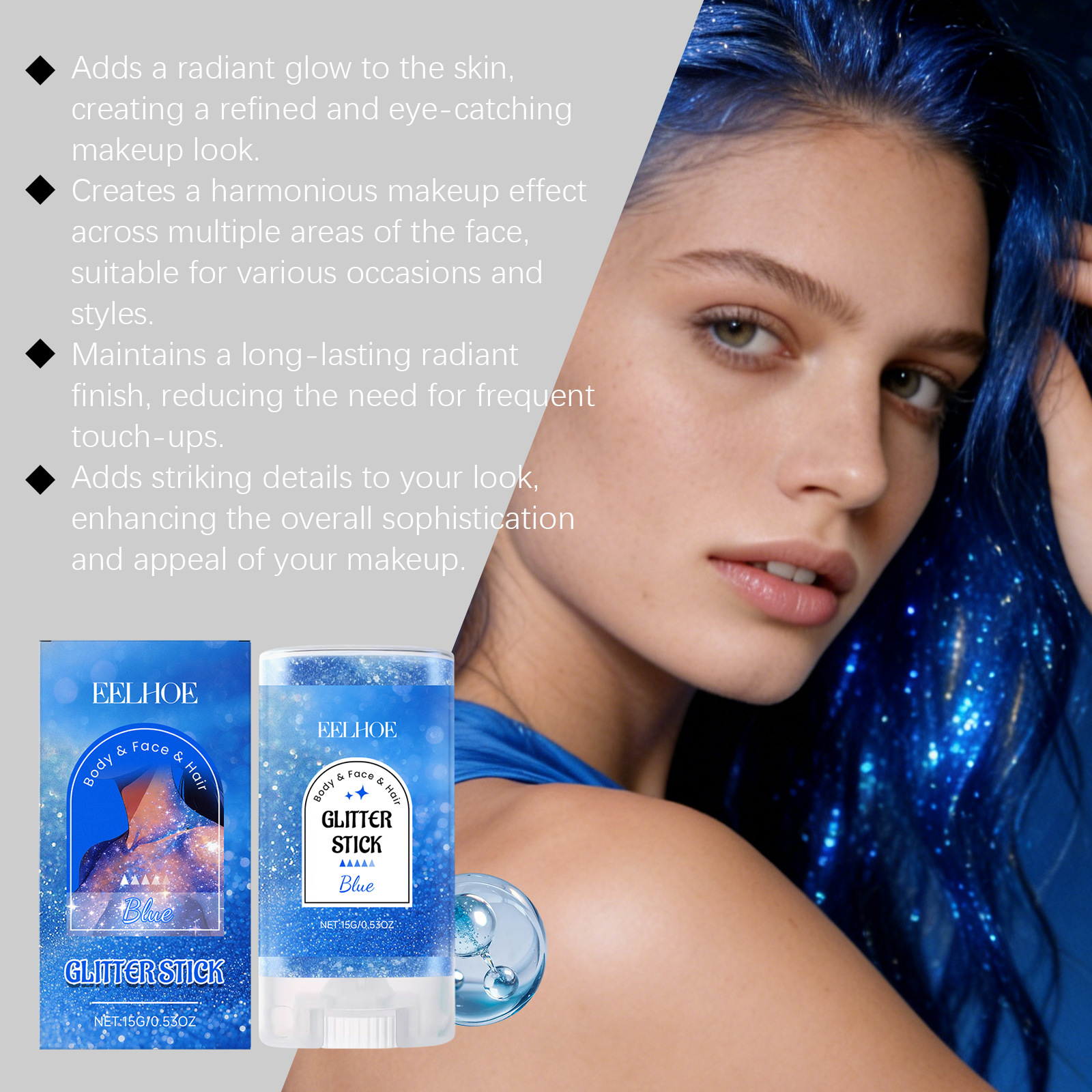Product information:Ingredients: mineral oil, beeswax, petrolatum, mica, synthetic fluorophlogopite, Cl 42090. Packing list: Body glitter stick *1 Product Image: