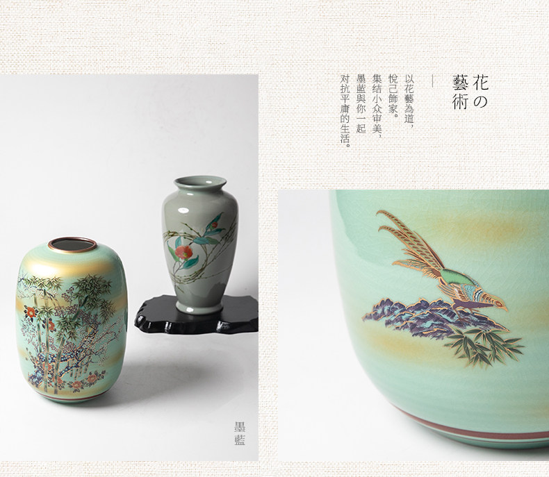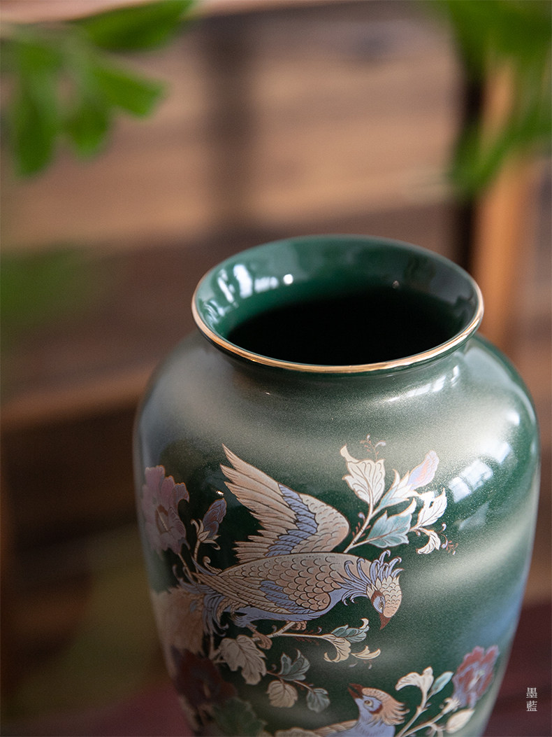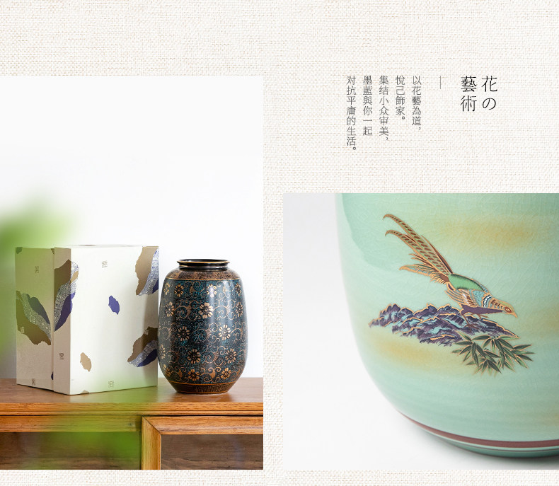 Product information:Style: Classical Material: Ceramic Size: Medium Suitable for: Flowers/Plants Vase Type: Flower Vase Applicable Space: Desktop Color Variations: Blue Granule Vase, Tenmoku Phoenix K...